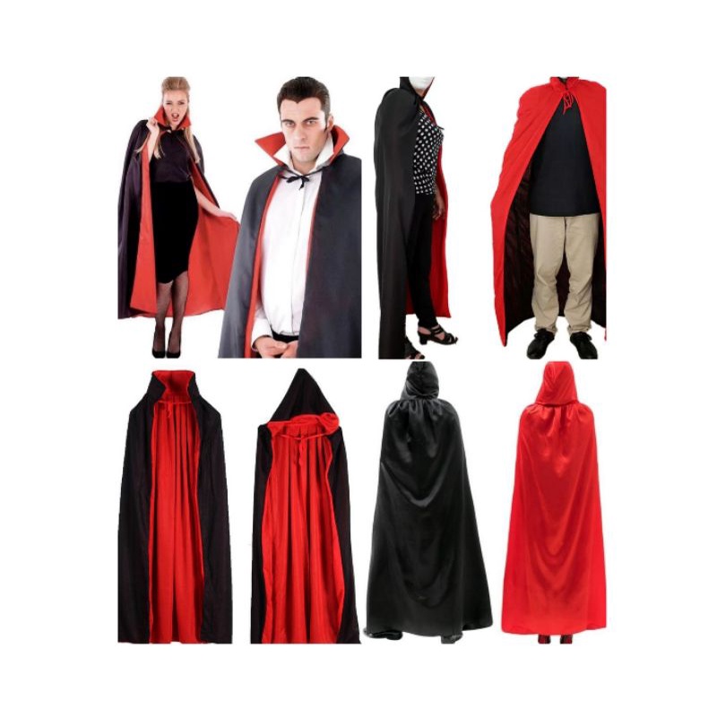 Capa Fantasia Vampiro ou Bruxa Dupla Face | Com Gola ou Capuz | Halloween Festa Temática
