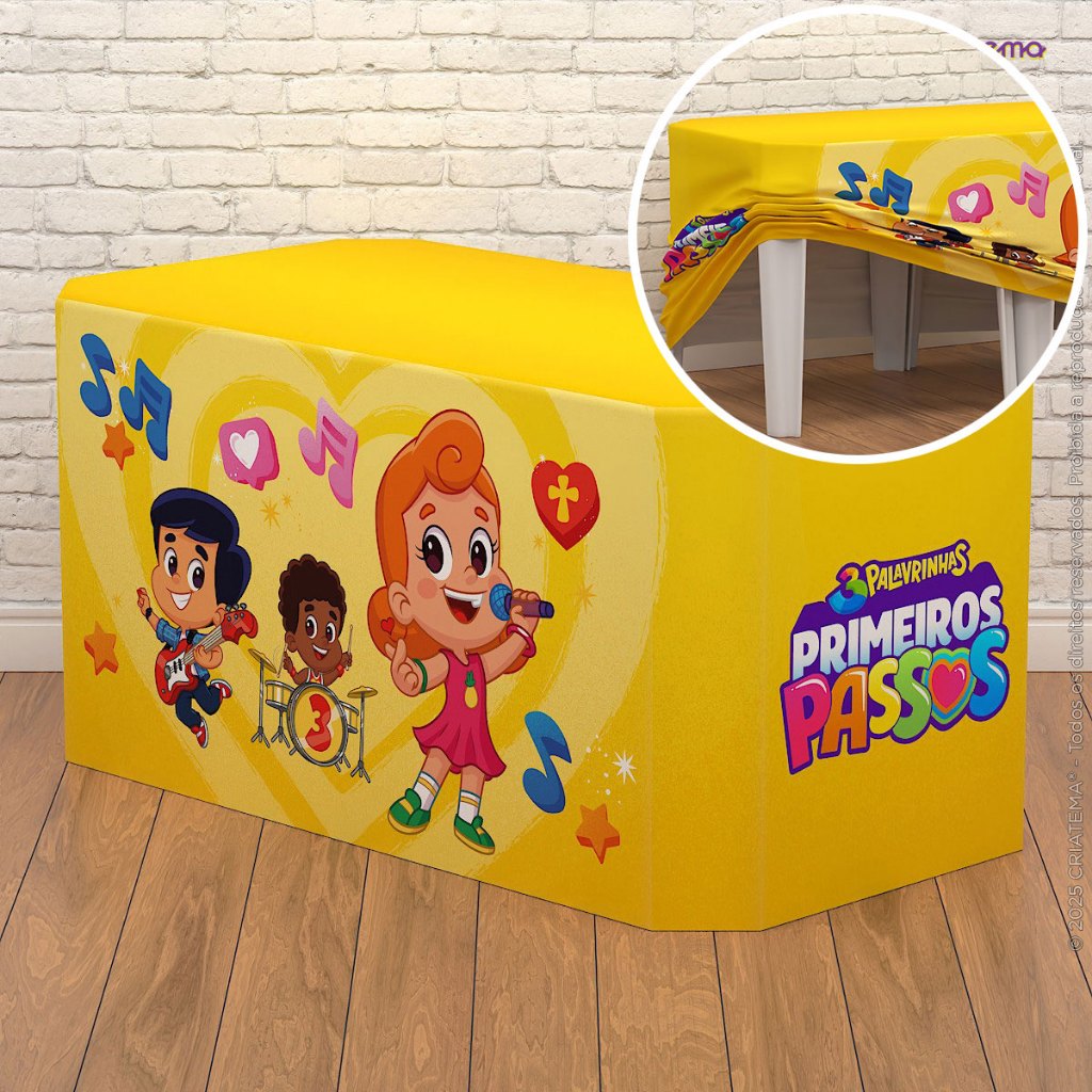 Capa Forro de Mesa Decoração Festa 3 Palavrinhas Aniversário Infantil Tecido Sublimado Veste Fácil - Licenciado