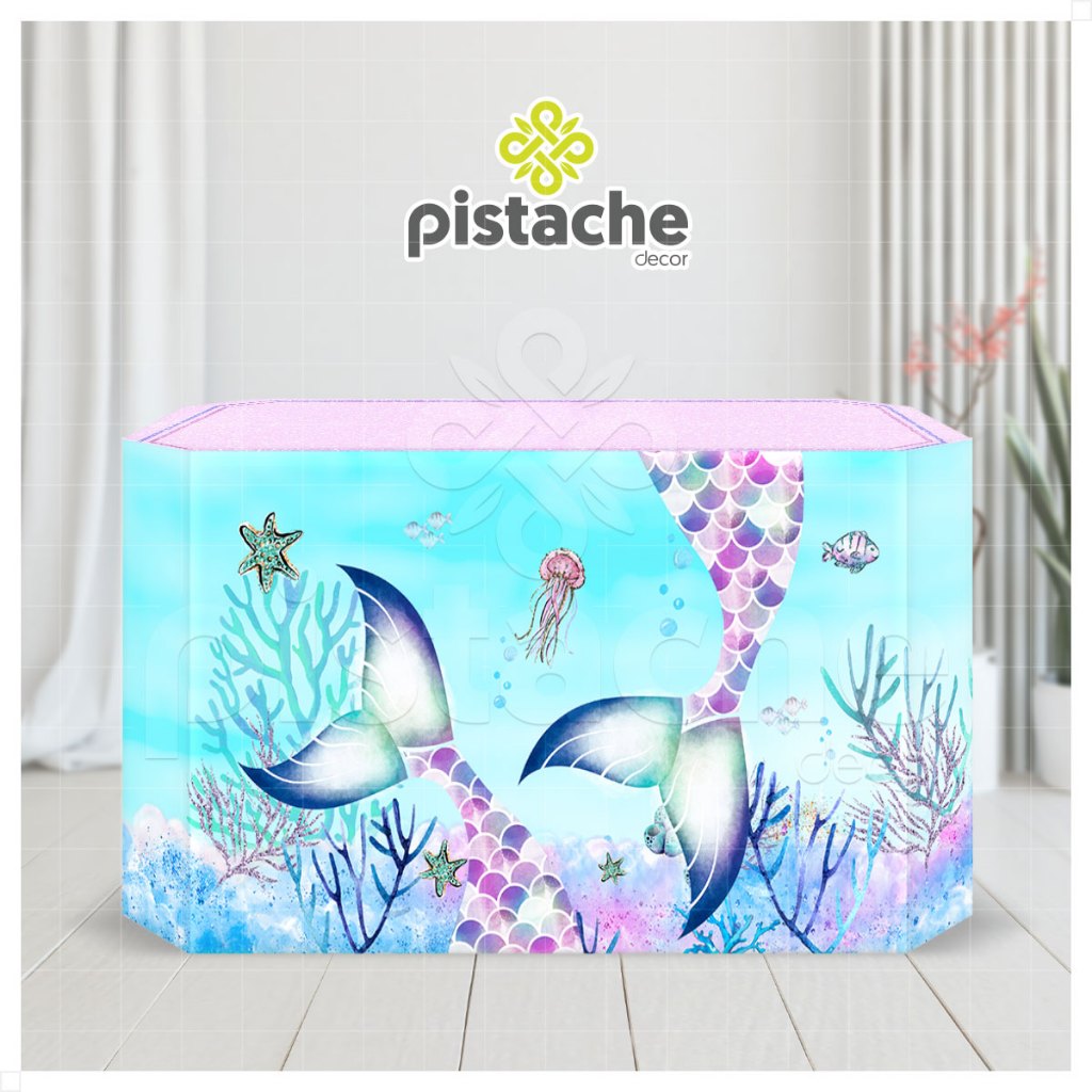 Capa Forro de Mesa Festa Decoração Fundo do Mar Aniversário Sereia Veste Fácil Em Tecido