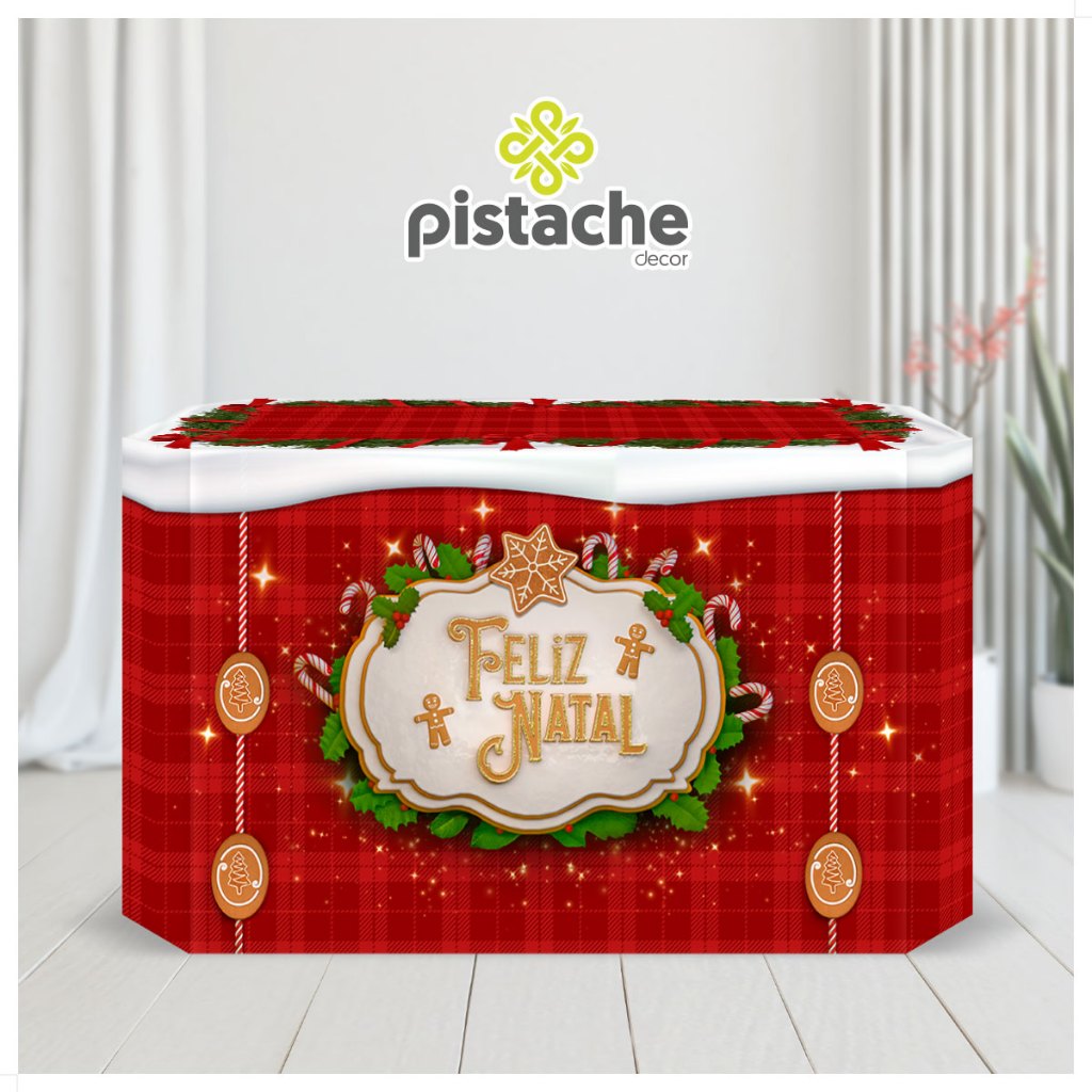 Capa Forro De Mesa Festa Decoração Natal 3D Sublimado Em Tecido Veste Fácil 1,40x0,70m