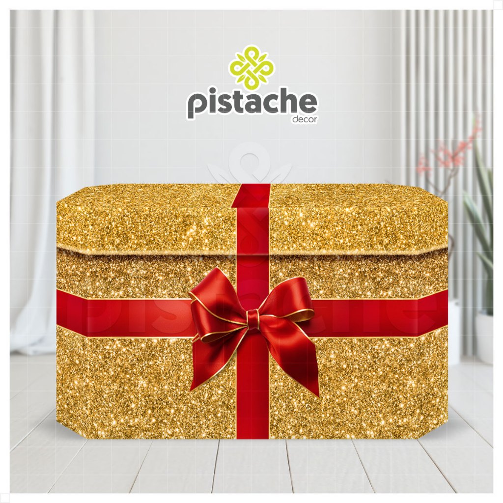 Capa Forro de Mesa Festa Natal Glitter Presente Sublimado Decoração de Mesa Em Tecido Veste Fácil