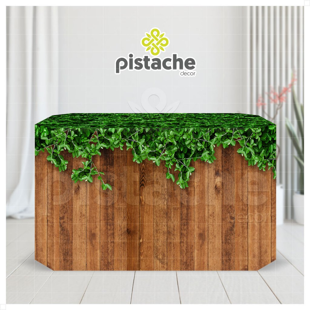 Capa Forro de Mesa Madeira Folhagens Decoração Fazendinha Em Tecido Sublimado Veste Fácil