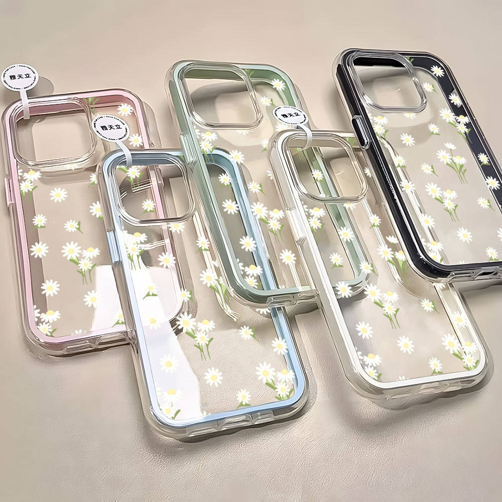 Capa Fresh Little Daisy Capinha Para iPhone 16 15 14 Plus 13 12 11 17 Air Pro Max Acrílico Transparente
