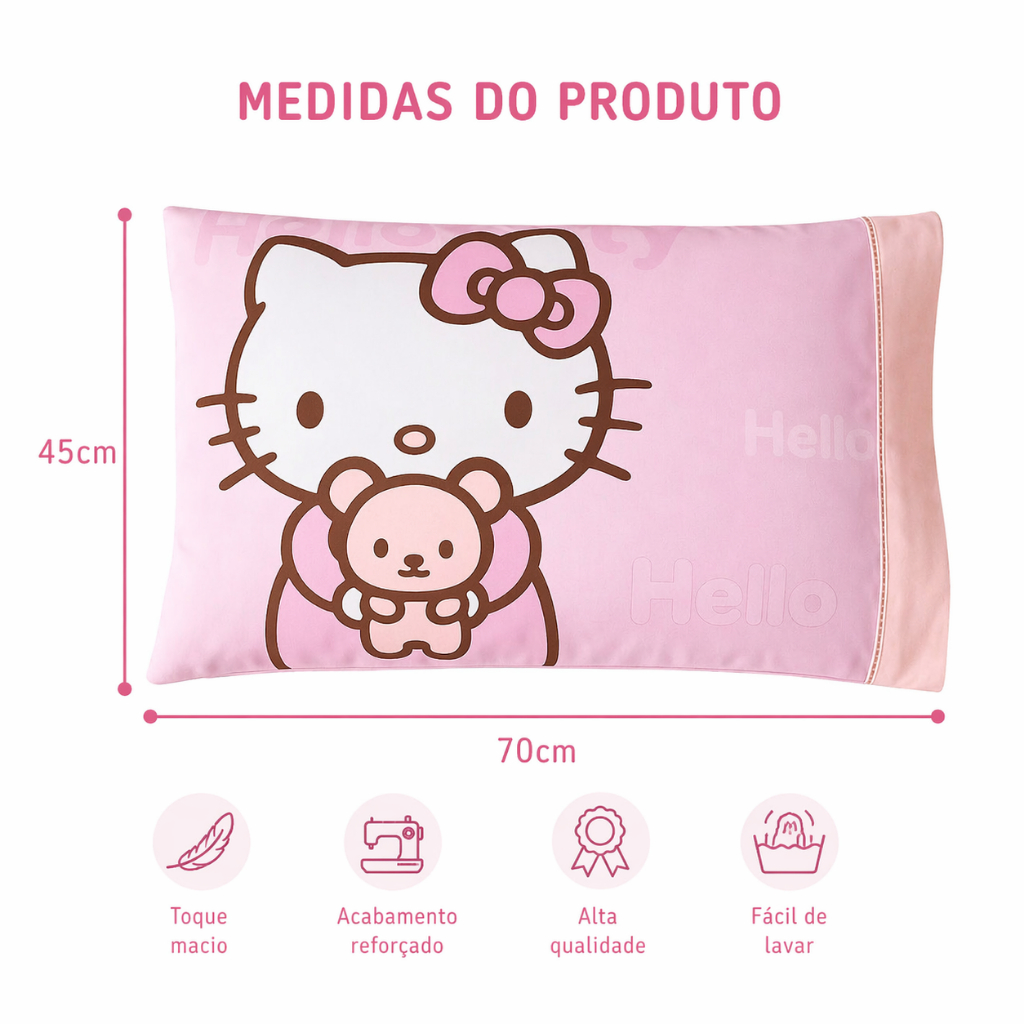Capa de Fronha Infantil Hello Kitty 50x70 cm – Toque Macio e Delicado com Ponto Palito Leve charme e alegria ao quarto das pequenas com a fronha infantil da Hello Kitty! 💖 Com estampa exclusiva e acabamento em ponto palito, ela é perfeita para decorar e proporcionar conforto na hora do sono. ✨ Detalhes do Produto: • Medidas: 50x70 cm • Estampa: Hello Kitty • Acabamento: Ponto Palito • Tecido com toque macio e agradável Micropercal • Ideal para travesseiros padrão infantil • Perfeita para meninas que amam a Hello Kitty! 💡 Combine com outros itens temáticos e transforme o quarto em um verdadeiro mundo encantado!