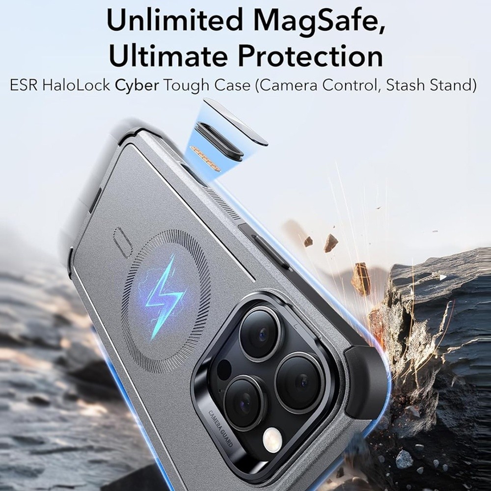 Capa iPhone 16 Pro Max Esr Cyber com Suporte Stash Cinza