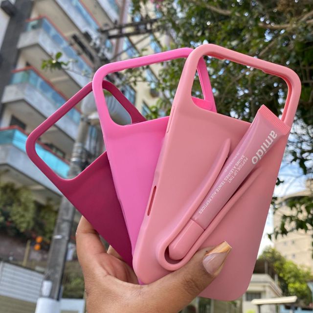 Capa IPhone Com Gloss XR 11 12 13 14 15 PRO MAX Incluso Estilo Hali Emborrachada Batom Brilho Labial