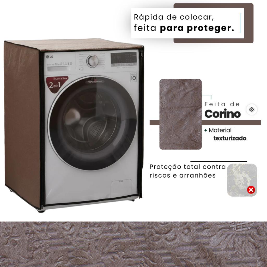 Descrição do ProdutoA CORTINAS_HOUSE é uma empresa especializada em fazer capas de altíssima qualidade para qualquer tipo de máquina de lavar , Capas de impressora , Capas de ar condicionado, televisores, churrasqueiras a gás e muito mais. Garantimos nossos produtos 100% Fácil de usar, guardar e limpar , pode ser facilmente limpa com um pano umedecido. A capa protetora evita poeira , não descolore, é feita em corino sendo um material impermeável de alta qualidade... A capa é perfeita, tem costura em nylon, antiestética, FORTE e resistente. A parte frontal possui abertura flexível com fechamento em zíper, facilitando o uso da máquina de lavar, sem a necessidade de remoção da capa A CORTINAS_HOUSE , tem o produto perfeito para proteger sua máquina de lavar , evitando poeira , umidade , óleos , tintas , sujeira , bactérias , derramamentos , xixi de animais de estimação , cabelo ou danos causados por acidentes , respingos , arranhões , água e outros contaminantes. prolongando a vida útil da sua máquina. CARACTERÍSTICAS DO MATERIAL - Corino flanelado; - Revestimento em PVC com reforço 100% poliéster; - Toque macio e suave; - Ideal para ambientes internos e externos; - Elevada resistência aos raios UV; - Impermeável, não retém poeira e protege contra água; - Fácil limpeza, resistente a produtos multiuso; - Proteção antibacteriana Microban®. ESPECIFICAÇÕES DO PRODUTO Sendo adicionados 2cm para encaixe e costura. Material: Corino - Revestimento em PVC 100% Poliéster com costura Nylon Fotos: Imagens Meramente Ilustrativas, capa não possui logomarca estampada. Garantia (Fabricante): Contra Defeitos de Fabricação. COMPATIBILIDADES - Samsung Lava e Seca 11kg Eco Bubble WD11M44530S e WD11M44530W - Samsung Lava e Seca 11 Kg AddWash WD11K6410OX - Samsung Lava e Seca 11 Kg WD4000 - WD11M44530W/AZ e WD11M44530S/AZ - Samsung Lava e Seca 11 Kg Eco Bubble WD11J6410AX - Samsung Lavadora de Roupas 11 Kg Eco Bubble WW11J44530W - Samsung Lava e Seca Wd6000 Eco Bubble 9 Kg - Samsung Lava e Seca Seine WD106UHSAGD e WD106UHSAWQ Frontal 10,1 Kg - Samsung Lava e Seca WD6000 WD10J6410AX 10,2 KG - Samsung Lava e Seca AddWash, 10.2 kg WD10K6410O - Samsung Lava e Seca WD4000 10.2 kg WD10M44530 - Secadora Samsung 12 kg DV6800 Elétrica (85 x 60 x 65,5) - Lavadora Samsung 11 kg WW11J Ecobubble WW11J44530WFAZ (85 x 60 x 65) - Lava e Seca Samsung 11 KG WD4000 WD11M44530SFAZ - Lava e Seca Samsung 11 kg WD11K AddWash WD11K6410OXFAZ - Lava e Seca Samsung 11 kg WD11J WD11J6410AWFAZ WD11J6410AXFAZ - Lava e Seca 10,5Kg Branca Prime Direct - WD10WP6 14 Programas de Lavagem - Lava e Seca 11 Kg WD11EP6(A) - Lava e Seca 11 Kg Smart Care Prime Touch - Lava e Seca Prime Touch WD-1412RT7 Frontal 10,2 Kg Aço - Lava e Seca Prime Touch WD-1412RT5 Frontal 10,2 Kg - Lava e Seca Prime WD-1409RD Frontal 10 kg - Lava e Seca Prime WD-1410RD5 Frontal 10 kg - Lava e Seca Prime Touch WD1412RT7 Frontal 10,2 Kg Aço - Lava e Seca Prime Touch WD1412RT5 Frontal 10,2 Kg - Lava e Seca 10,2 Kg WD1412RT(A)7B - Lava e Seca 10,2 Kg WD1412RT(A)7 - Lava e Seca 10,2 Kg WD1412RTB(A) - Lava e Seca 11 Kg WD11WP6(A)
