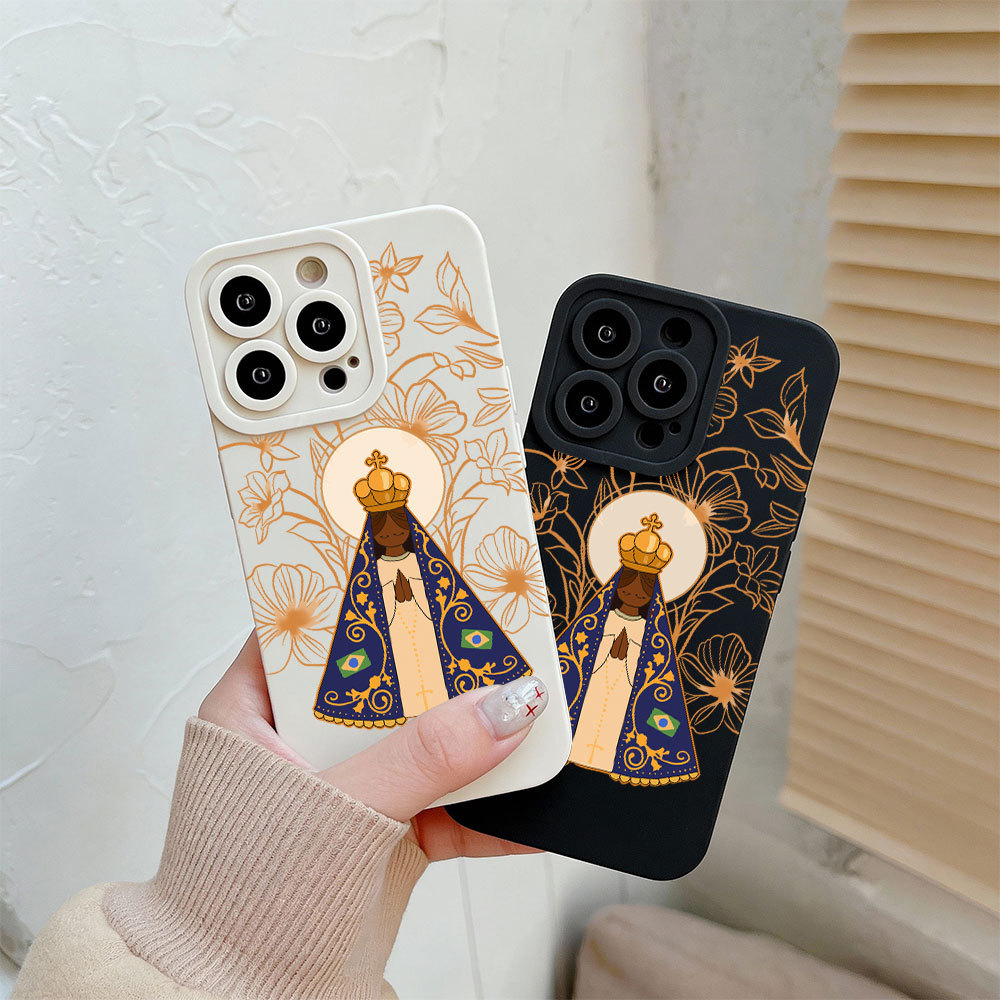 Capa Luxo Nossa Senhora Brasil Silicone Preto Branco Para iPhone 17 16 15 14 13 12 11 XR XS Pro Max