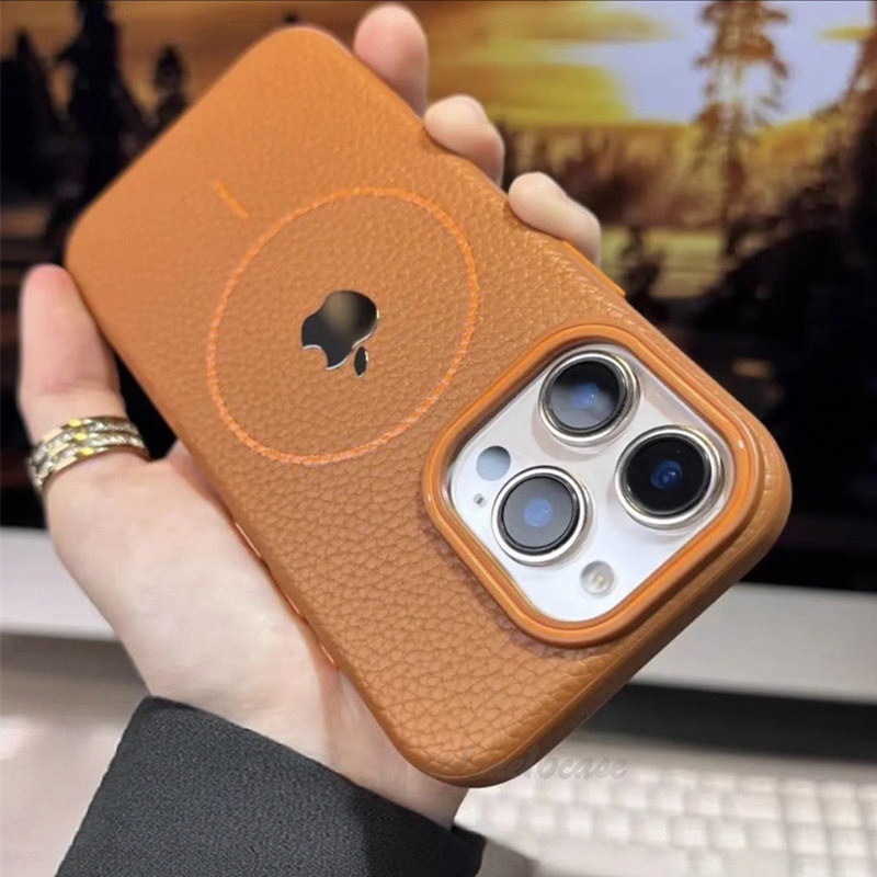 Capa Luxuosa De Couro À Prova De Choque Para iPhone 16 15 14 13 12 11 Pro Max Plus Magnética De Carregamento Sem Fio