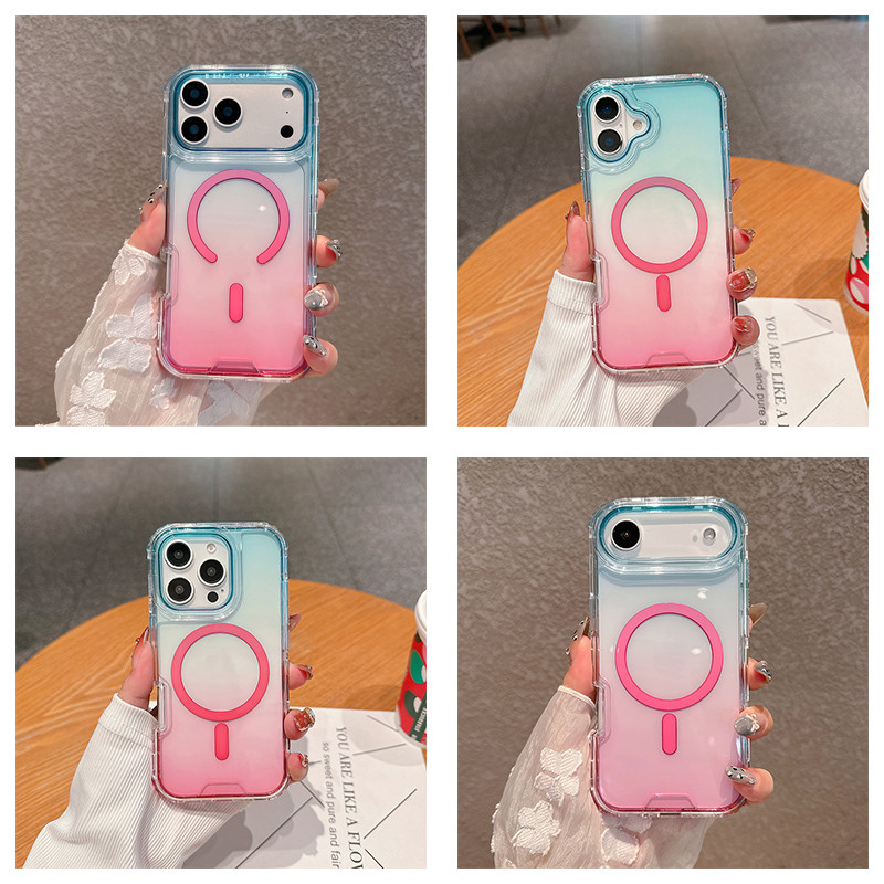 Capa Magnética À Prova De Choque 3 Em 1 , Resistente , Dura , Gradiente , Para iPhone 17 Air 16 15 14 13 12 11 Pro Max 1