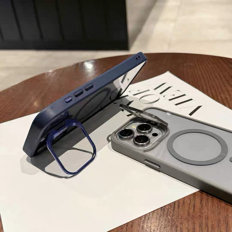 ③Capa Magnética Com suporte invisível para iPhone 1616plus 16proiPhone 16promax Capa Macia Com Proteção De Camera Lente