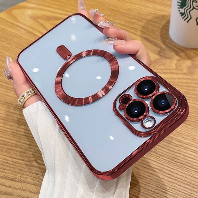 Capa Magnética Para 15/15 PRO/15 PRO MAX Com Borda Colorida Para Carregador Sem Fio Magsafe