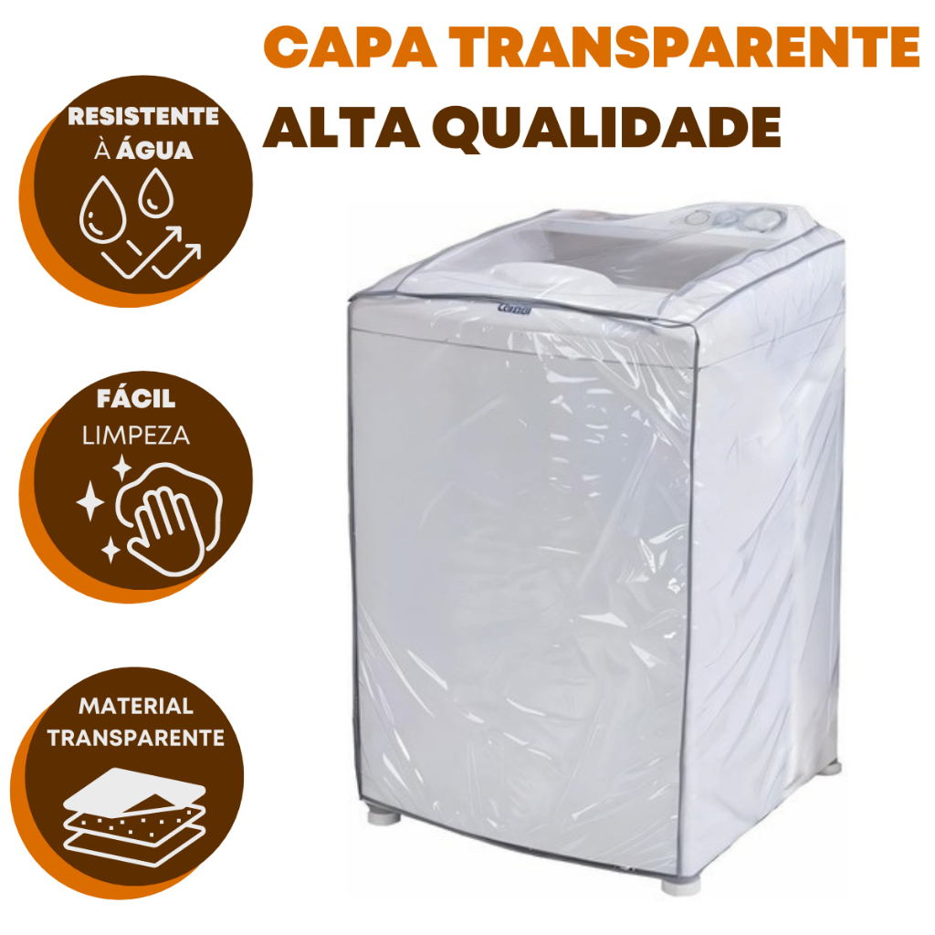 Capa Máquina de Lavar Transparente Impermeável 8 9kg 10kg 11kg 12kg 13kg 14kg 15kg 16k todas Marcas
