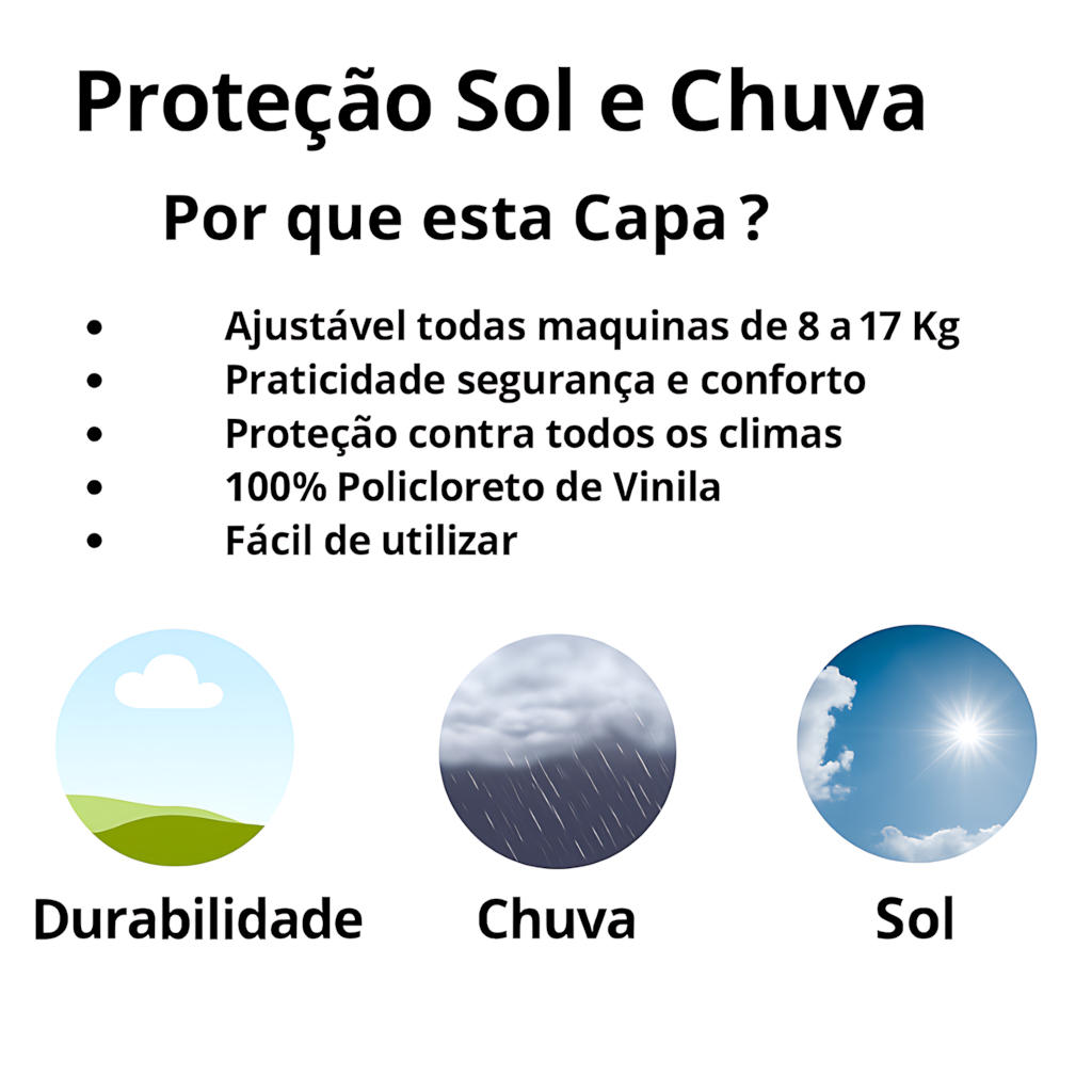 | Capa Protetora Máquina de Lavar Roupas Impermeável Sol e Chuva - El... | R$ 19,90 | 67% | 4.7/5 | 149 |
