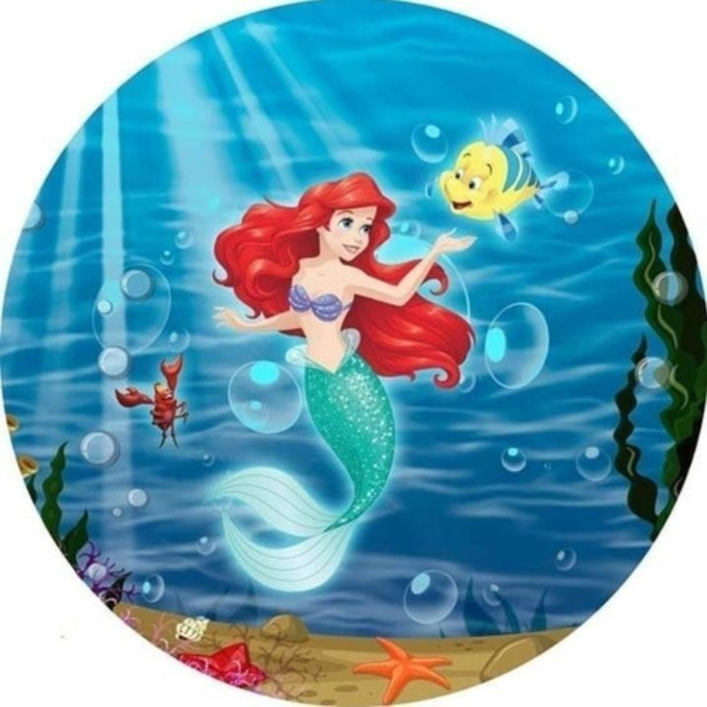 Capa Mini Painel Redondo 50x50 Veste Fácil Tema Sereia Ariel Decoração de Mesa