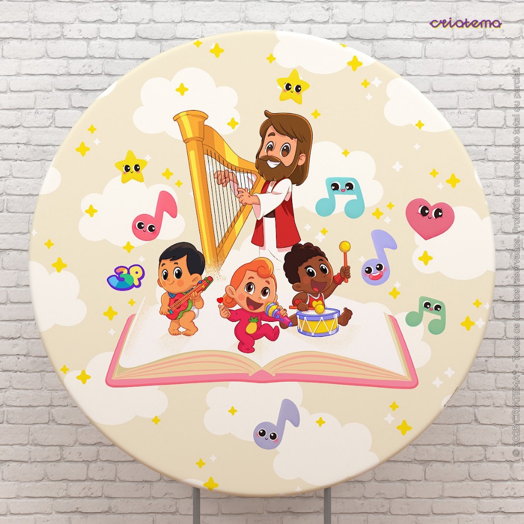 Capa Painel de Festa Redondo Decoração 3 Palavrinhas Em Tecido Sublimado C/Elástico - Licenciado