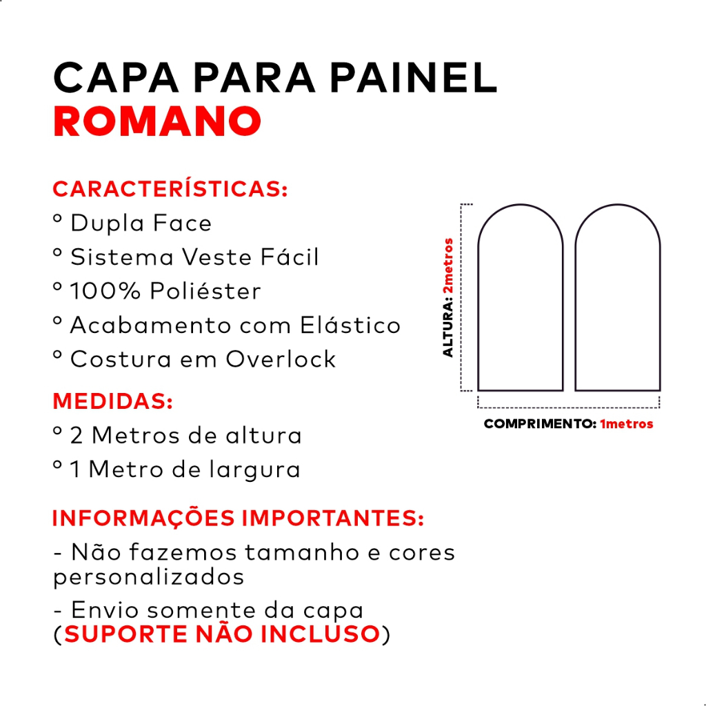 OLÁ! SEJAM BEM VINDOS A JK PAINÉIS E DECORAÇÕES. ATENÇÃO: ENVIO RÁPIDO GARANTIDO: TODAS AS COMPRAS SÃO DESPACHADAS EM ATÉ 24 HORAS ÚTEIS, PODENDO ALGUMAS SER ENVIADAS NO MESMO DIA. PAINEL ROMANO PICOLÉ Com o painel romano picolé da JK Sublimações é possível criar uma decoração criativa e cativante para qualquer festa ou evento. Abaixo, confira mais informações sobre os produtos. FICHA TÉCNICA: - Material: Tecido Malha Poliéster Flexível 240g/ml - Composição: 95% Poliéster + 5% elastano - Acabamento: Costura em overlock nas laterais - Impressão: Os produtos são produzidos por meio da impressão sublimada com alta resolução, durabilidade e capacidade de reproduzir cores vivas e detalhes finos - Qualidade: Não reflete luz e não amassa - Garantia: Contra defeito de fabricação MEDIDA PADRÃO PAINEL ROMANO: >> Tamanho Único - 1,00x2,00 << ITEM INCLUSO: 1 Capa de Painel Romano Picolé em tecido, sublimado SÓ FRENTE. INFORMAÇÕES ADICIONAIS SOBRE O PRODUTO: - As cores dos painéis e das capas podem variar de tonalidade em 15% devido a resolução do monitor ou tela do celular, mas nada que interfira na qualidade do produto; - Possui efeitos com tecnologia em 3D e Glitter nos fundos com brilho; - Tanto os painéis, como as capas, são do tipo veste-fácil, permitindo rápida instalação em estruturas redondas ou cilíndricas; - Os produtos NÃO acompanham nenhum tipo de estrutura. INSTRUÇÕES DE LAVAGEM: - Utilize sabão neutro; - Não torça o tecido; - Não coloque em máquinas de lavar; - Para secar, vire do lado avesso em baixa temperatura; - Evite exposição direta ao sol. PRAZOS E ENVIO: - Normalmente, em 99% dos casos, os produtos são despachados em até 24 horas úteis. Porém, há exceções em que o Mercado Livre solicita que o despacho seja feito apenas no dia seguinte por questão de logística. - Nossos produtos são enviados para todo o Brasil com Nota Fiscal e embalagens personalizadas com a nossa marca. Cuidado com fraudes! - O prazo de entrega é estipulado pela plataforma, faça uma simulação de compra e verifique o prazo de entrega. ATENÇÃO CLIENTES: - Não fazemos alterações ou troca das imagens do anúncio; - Realizamos personalização de temas para clientes recorrentes. Caso tenha interesse em solicitar um desenvolvimento, entre em contato conosco pelas perguntas, ou por mensagem na última compra que realizou; - Caso não encontre o tema de seu interesse, mande nas perguntas o modelo que gostaria, ou nos envie uma mensagem na sua última compra conosco; - Caso tenha divergência com seu produto, antes de efetuar devoluções ou cancelamentos, entre em contato com a gente via mensagem em sua última compra. AINDA FICOU COM ALGUMA DÚVIDA? Deixe sua pergunta ou entre em contato com a nossa equipe diretamente pelos canais de comunicação. Iremos te atender o mais rápido possível. Garantia do vendedor: 7 dias
