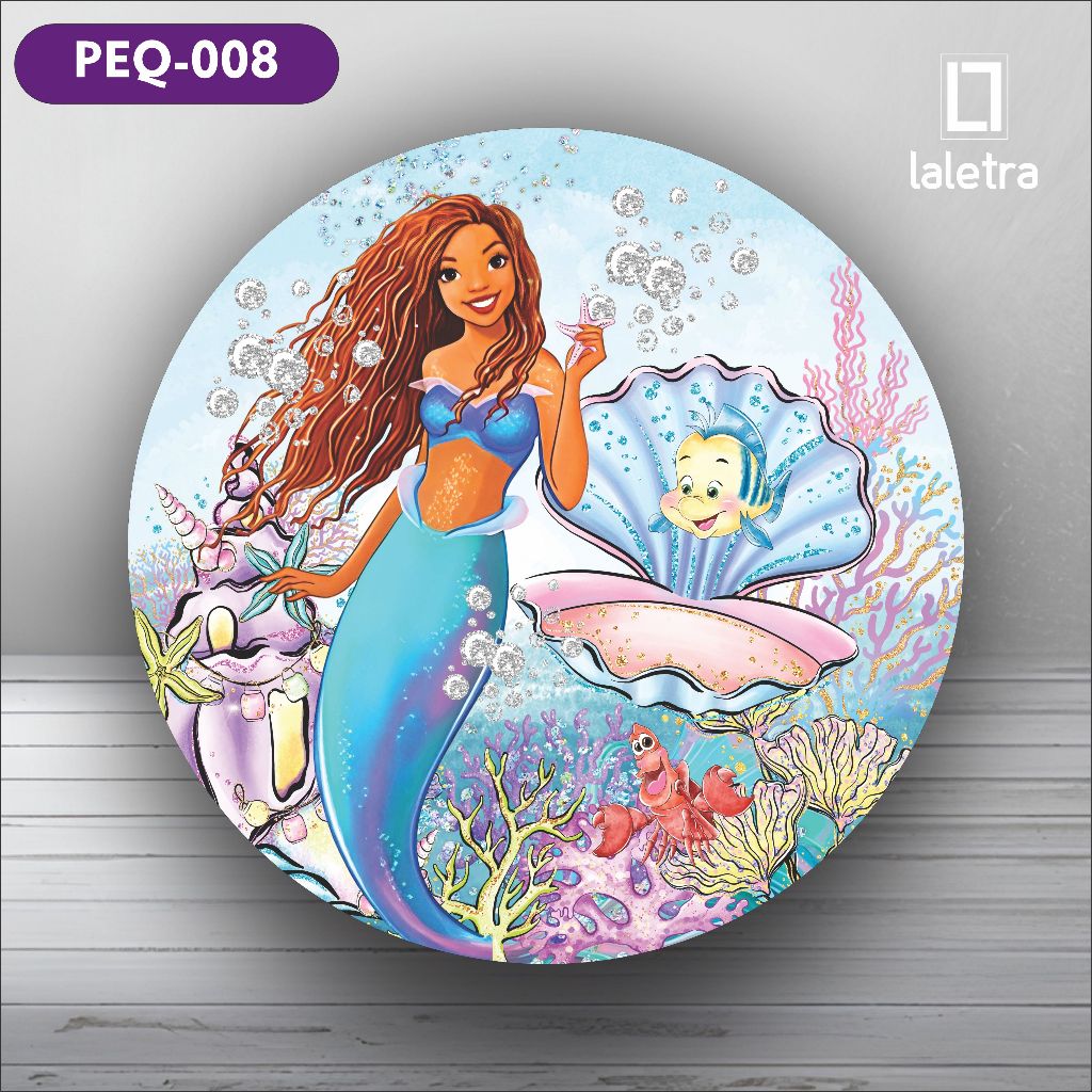 Capa Painel Redondo de Festa Veste Fácil Sublimados Tema Pequena Sereia Decoração Exclusiva.