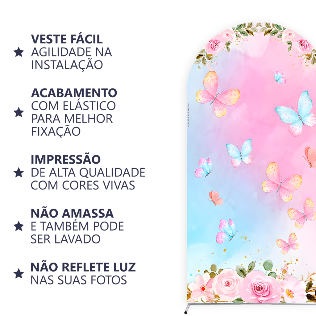 Capa Painel Romano/Picolé 2x1 Jardim de Borboletas Tecido Sublimado com Elástico Decoração de Festas