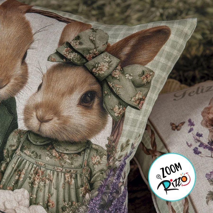 Capa para Almofada de Páscoa Premium - Casal de Coelhos - Xadrez Verde - 43x43cm - 1 unidade - Rizzo