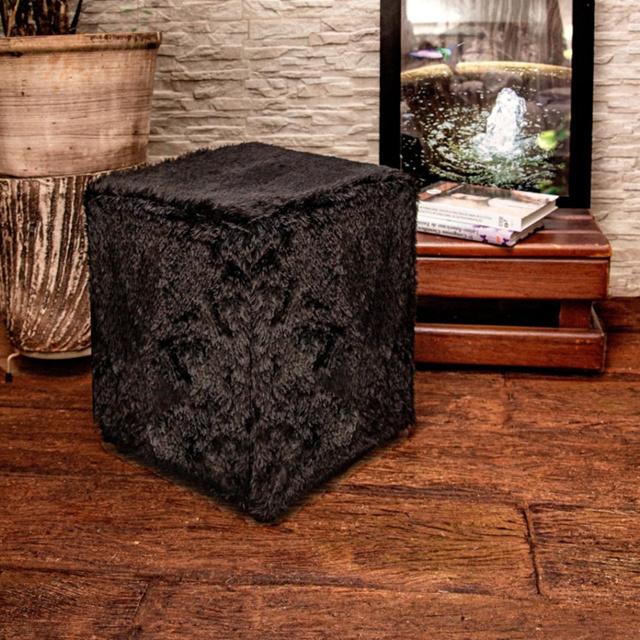 Capa para Banquinho Puff Quadrado Pelo Curto Preta
