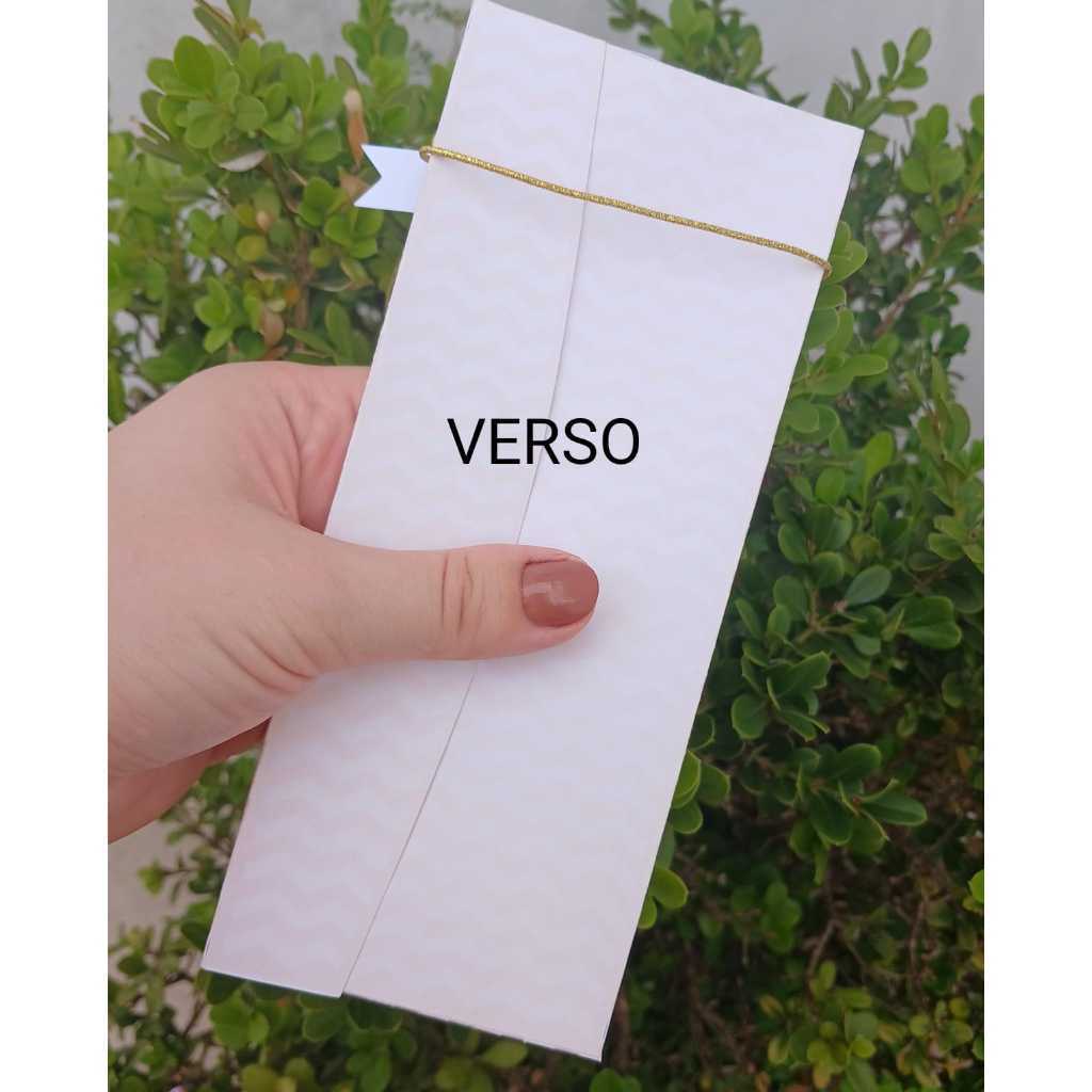Características do produto: Material: Papel Offset 180g – resistente e de ótima qualidade. Quantidade: 10, 15 ou 20 Unidades (Verificar a Variação) Capacidade: Perfeita para 1 Barra de Chocolate de 90 Gramas Design delicado: Ideal para destacar seus doces e presentear com charme. Pronta entrega: Nada de esperar! Envio rápido para facilitar sua produção. OBS: NÃO ACOMPANHA O DOCINHO! / NÃO ACOMPANHA A CORDINHA!