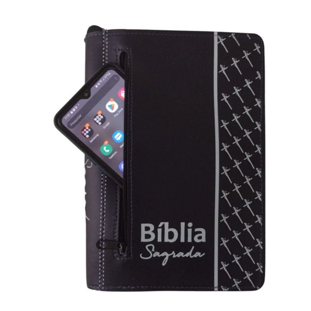 Capa para Bíblia Média com Zíper e Bolso Externo Porta Celular - Número 11