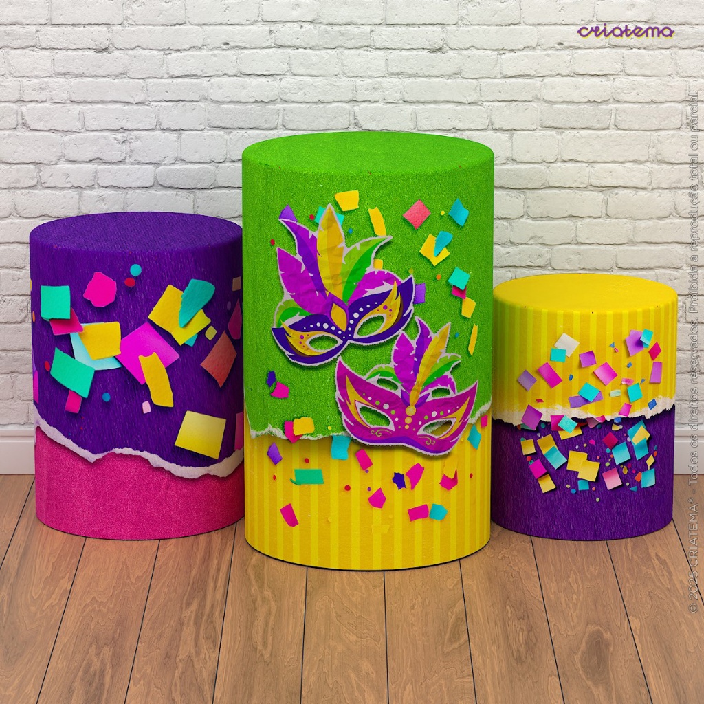*** ATENÇÃO: NÃO FAZEMOS AJUSTES DE MEDIDA OU ARTE NAS CAPAS DE CILINDRO DESTE ANÚNCIO. VERIFIQUE AS MEDIDAS ANTES DE FINALIZAR A COMPRA *** >>>ATENÇÃO<<< NÃO ACOMPANHA ESTRUTURA/SUPORTE, VENDEMOS SOMENTE AS CAPAS EM TECIDO, SISTEMA VESTE FÁCIL!!! MEDIDAS DO TRIO DE CAPA PARA CILINDRO: TAMANHO P: (A) Altura: 48cm // (D) Diâmetro: 39cm // (C) Circunferência: 122cm TAMANHO M: (A) Altura: 60cm // (D) Diâmetro: 45cm // (C) Circunferência: 141cm TAMANHO G: (A) Altura: 80cm // (D) Diâmetro: 51cm // (C) Circunferência: 160cm Agora sua festa está completa!!! Graças ao Kit de Capas para Cilindro em Tecido da Criatema!!! Você já conhece nossa qualidade na confecção dos painéis de festa e também poderá contar com a gente nas capas de cilindro em tecido sublimado da sua decoração. DETALHES DO TRIO DE CAPA PARA CILINDRO EM TECIDO: + Tecido Malha New (Que estica e não amassa). + Gramatura: 140g/m de excelente qualidade. + Composição do Tecido: 95% Poliéster e 5% de Elastano. + Elástico cuidadosamente costurado na base dos cilindros. + Acabamento em overloque evitando que o cilindro desfie. BENEFÍCIOS DAS CAPAS DE CILINDRO CRIATEMA: + Sistema "Veste Fácil". Agilidade na instalação + Cores vivas que não desbotam + Sua decoração fica pronta em poucos minutos + Estica e não amassa. + Pode ser lavado quantas vezes for necessário + Não reflete luz, por ser feito em tecido PRODUÇÃO E ENVIO: - TODOS OS PEDIDOS ACOMPANHAM NOTA FISCAL. - O trio de capas é enviado em até 1 DIA ÚTIL após pagamento aprovado. - Possui garantia contra defeito de fabricação. - O envio é feito em embalagem individual e com todo carinho. - Os prazos para entrega variam de acordo com o seu CEP, não nos responsabilizamos pelos prazos informados pela plataforma *** Tem alguma dúvida antes de finalizar sua compra? Envie uma mensagem para nós que ajudaremos você! Temos vários anos de experiência no mercado em itens sublimados. ***