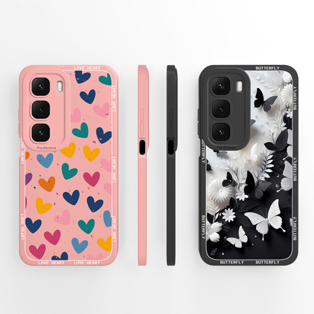 Capa Para Infinix Hot 60i 60 Pro + Borboleta Brilhante Amor Coração Quadrado À Prova De Choque Antiderrapante Capas Durá
