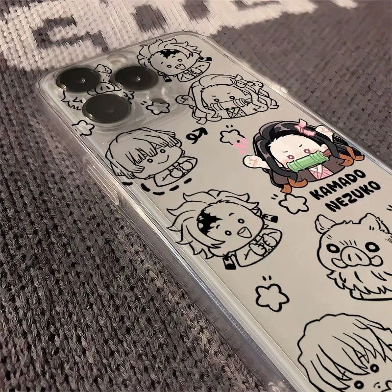 Capa Para iPhone 13 12 11 16 15 14 17 plus air pro max 7 8 x xr xs Demon Slayer transparente Anti-Impacto