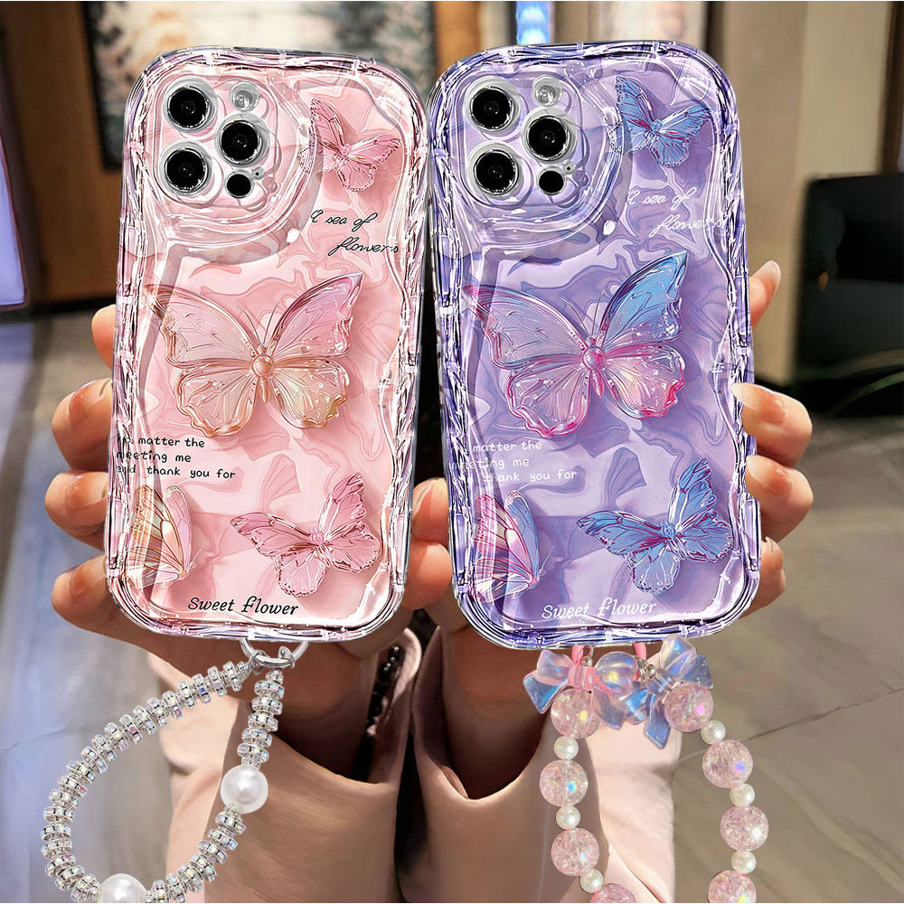 Capa Para iPhone 17 Pro Max 17Air 16 15 13 11 14 12 11 Xs XR Na Moda E Atraente Roxo Rosa Borboleta Caso De Telefone