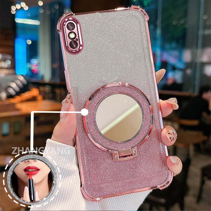 Capa Para iPhone X Xs Xr Max Quatro Cantos anti-Queda Galvanizado glitter De Telefone Com Recursos Estéticos E Suporte D