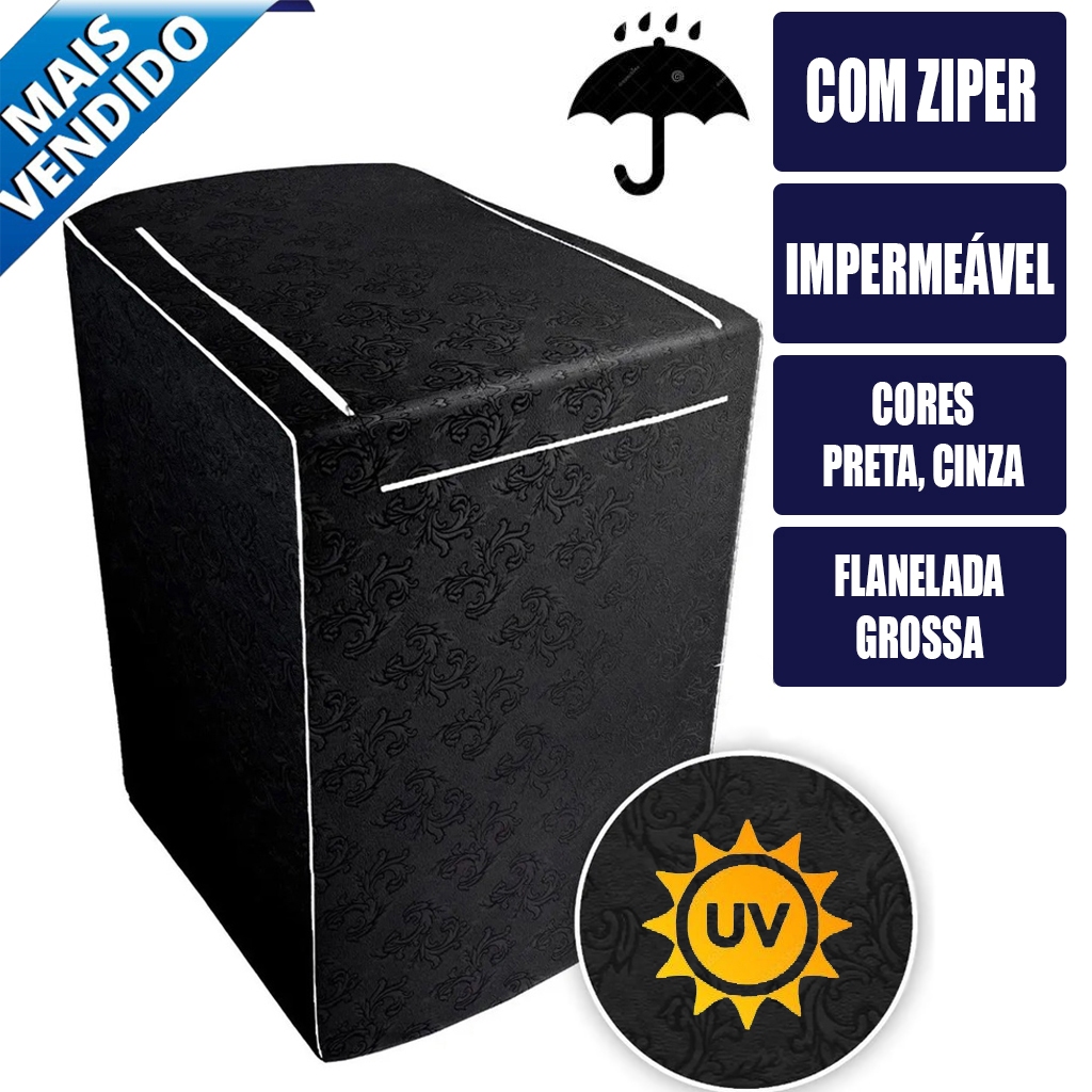 Capa para Maquina de Lavar com Ziper 10, 11, 12, 13, 14, 15, 16, 17, 18kg Electrolux Brastemp Consul