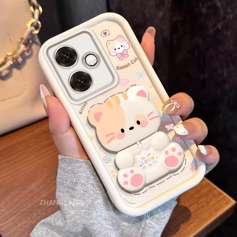 Capa Para OPPO A5 Pro 5G Estética Urso Rotativo Suporte Novo design De Telefone À Prova De Choque silicone TPU Casca Mac