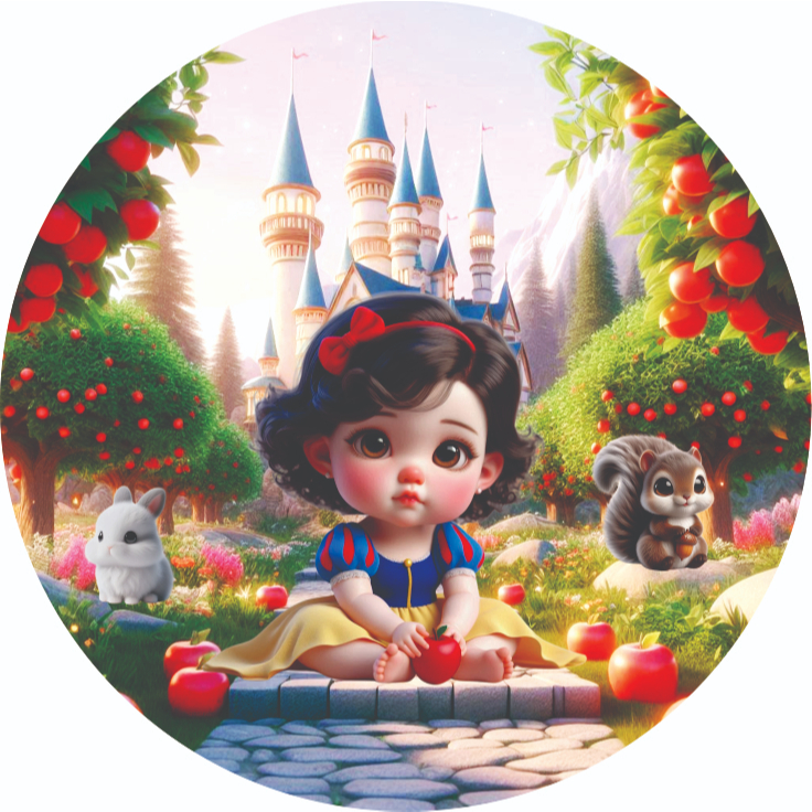 Capa para Painel de Festas Redondo com Acabamento em Elástico 1.50x1.50 e 50cm veste fácil Baby Branca de neve