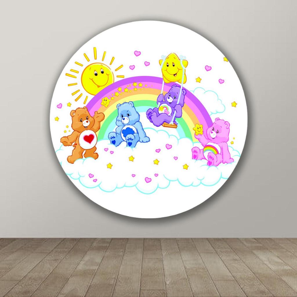 Capa Para Painel Redondo Tema Ursinhos Carinhosos Colorido Arco iris Decoração Malha Sublimada tem frete grátis?