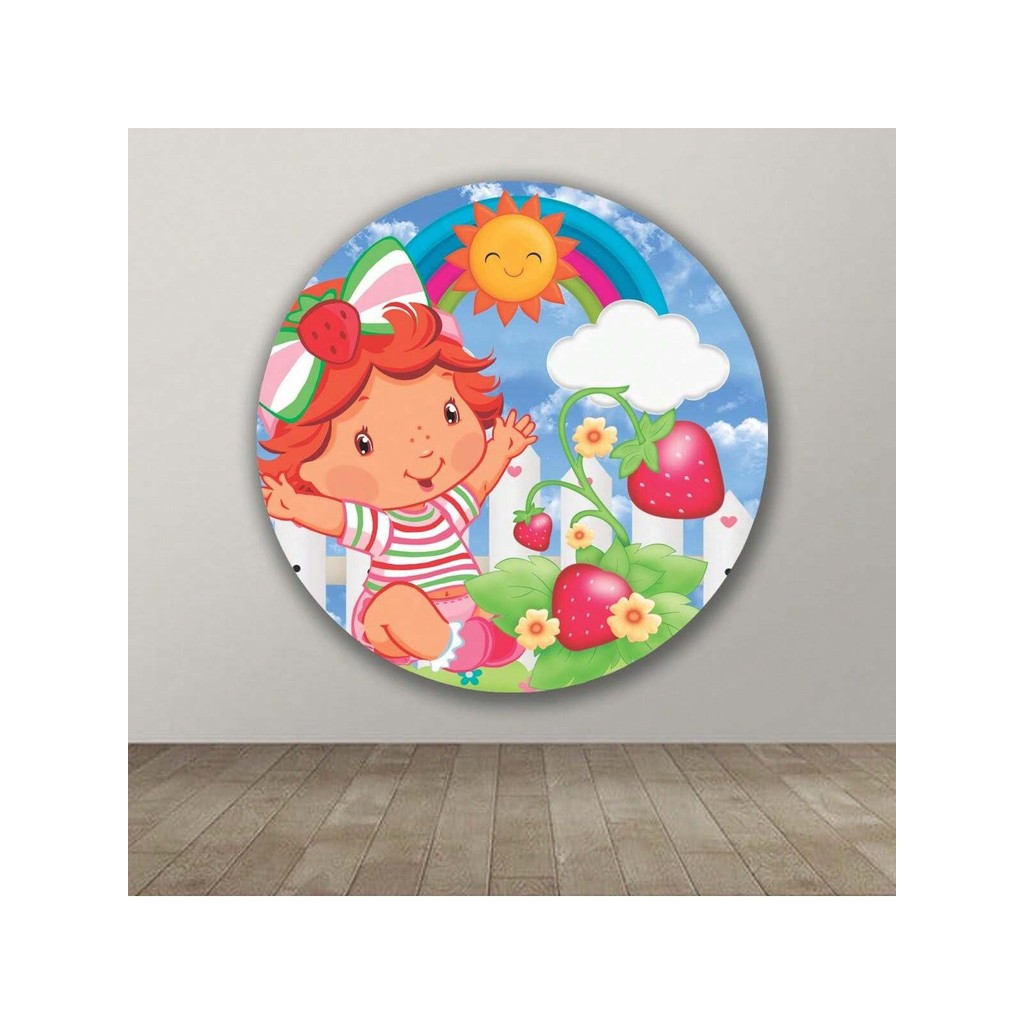 Capa Para Painel Redondo Temático Moranguinho Rosa Fruta Decoração MEDIDA 50X50