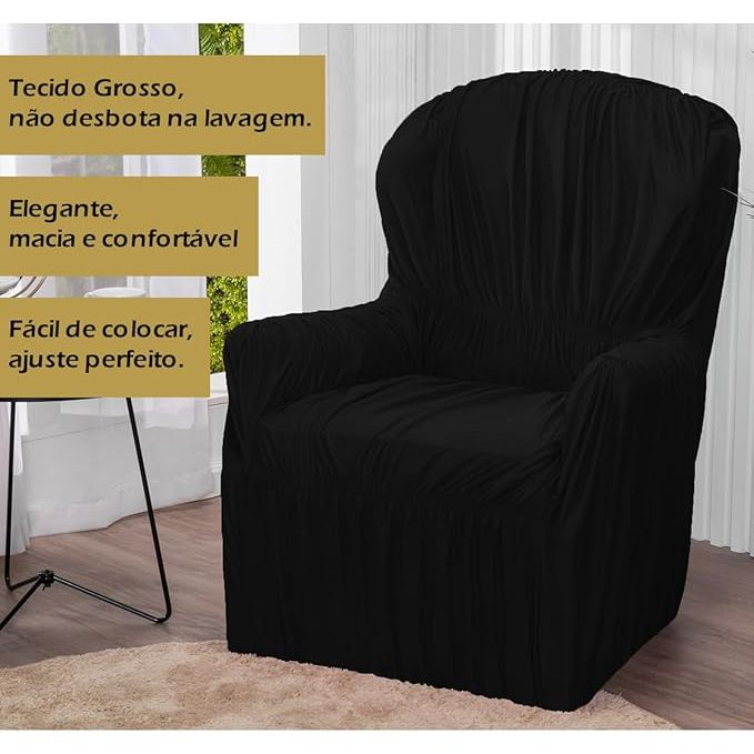 DESCRIÇÃO DO PRODUTO – CAPA PARA POLTRONA Renove sua poltrona com praticidade e sofisticação usando a Capa para Poltrona em Tecido Malha Gel, ideal para quem busca conforto, beleza e proteção em um único produto. Confeccionada em malha gel de alta qualidade, a capa possui toque macio, excelente resistência e alta elasticidade, permitindo que o tecido estique facilmente e se adapte perfeitamente ao formato da poltrona, proporcionando um encaixe firme, elegante e sem sobras. Além de transformar o visual do ambiente, a capa protege sua poltrona contra poeira, manchas, sujeira e desgaste do uso diário, sendo uma ótima opção para manter o móvel sempre bonito e conservado. Diferenciais: Tecido Malha Gel Premium – macio, resistente e confortável Super elástica – estica bem e se ajusta perfeitamente Encaixe perfeito – não escorrega e não deforma Renova e protege sua poltrona Fácil de colocar, remover e lavar Ideal para sala, quarto, escritório ou área de descanso MEDIDAS COMPATÍVEIS (aproximadas) Largura do encosto: até 90 cm Altura do encosto: até 90 cm Altura total da poltrona: até 1,10 m Largura do assento: aproximadamente 55 cm Altura do braço da poltrona: aproximadamente 35 cm Indicada para poltronas dentro dessas medidas.