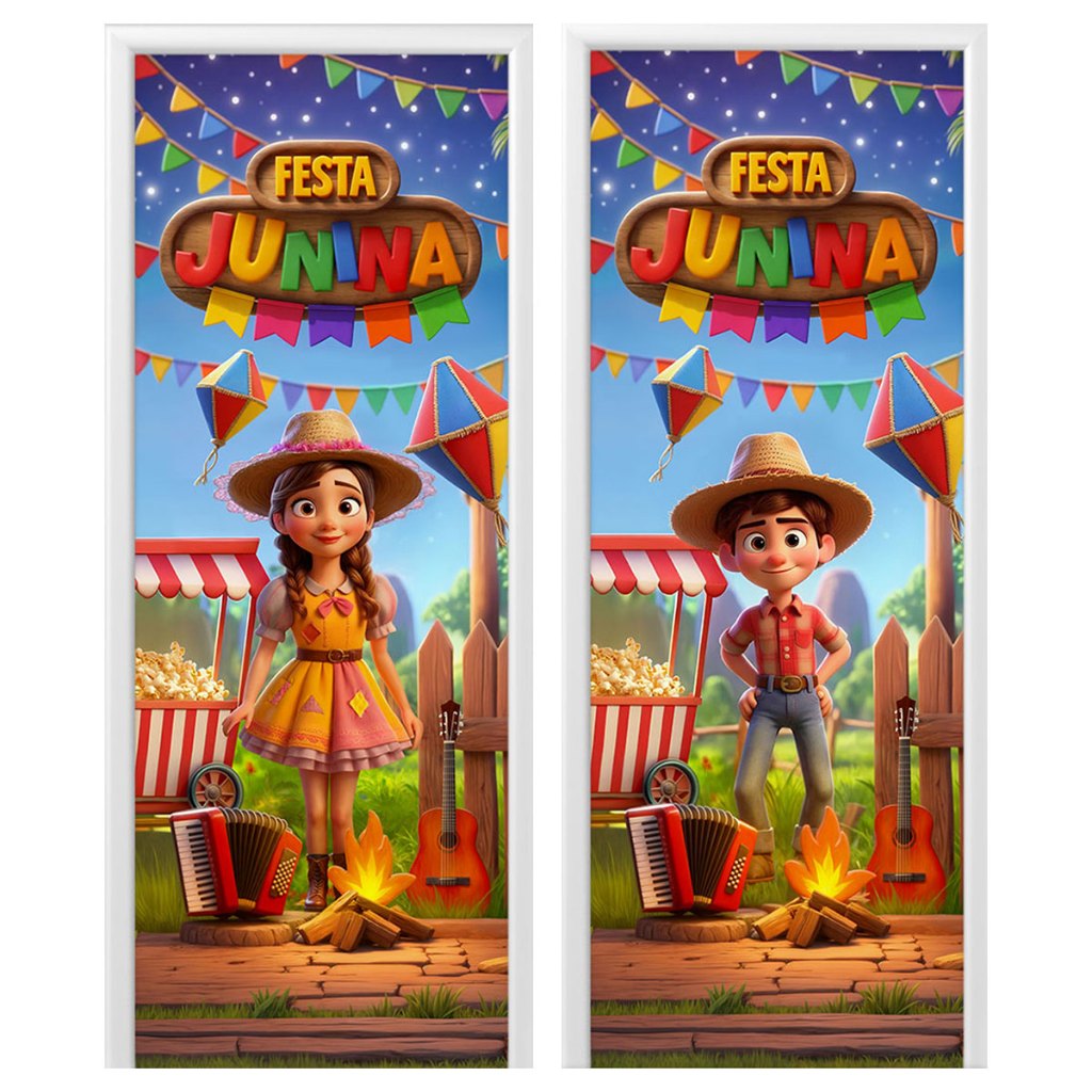 Capa Para Porta Festa Junina Em Tecido Sublimado São João Arraiá - Kit 2 Unidades