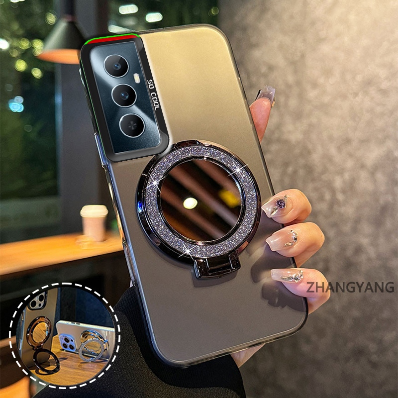 Capa Para realme C65 Silicone Fosco TPU De Telefone Estética Espelho Função Suporte Novo design anti Queda Caso Macio