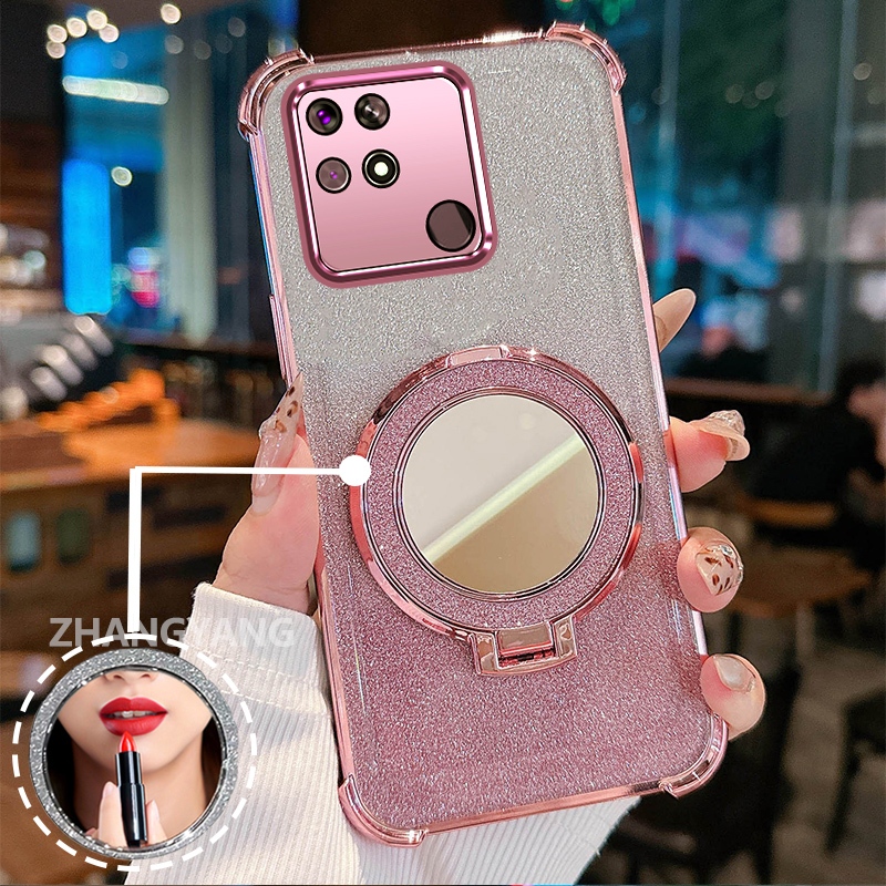 Capa Para redmi 10C Quatro Cantos anti-Queda Galvanizado glitter De Telefone Com Recursos Estéticos E Suporte De Espelho