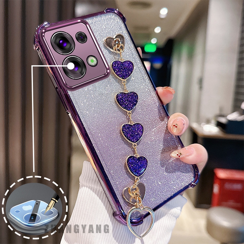 Capa Para Redmi note 13 Pro Flash anti-Queda Galvanizada De Telefone Com Pulseira De Coração Fofa TPU Macia De silicone