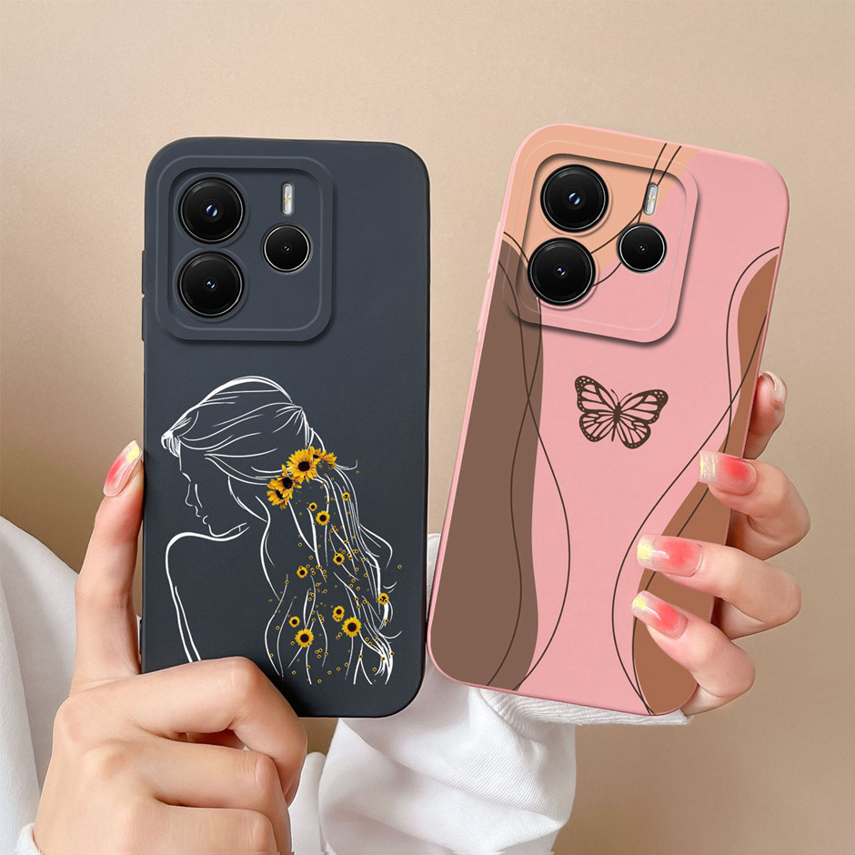 Capa Para Redmi Note 14 4G 5G Lindas Flores Padrão Protetor De Silicone Líquido Macio TPU Traseira RedmiNote14 Ultrafina