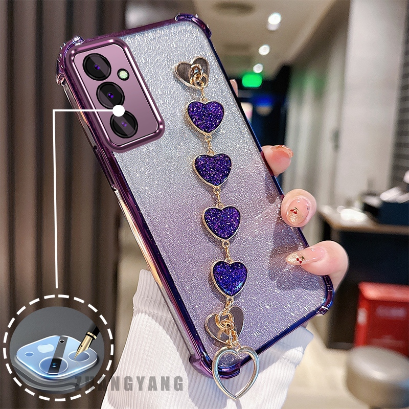 Capa Para Samsung A05s Flash anti Queda Galvanizado Caso De Telefone Com Pulseira De Coração Bonito TPU silicone Macio