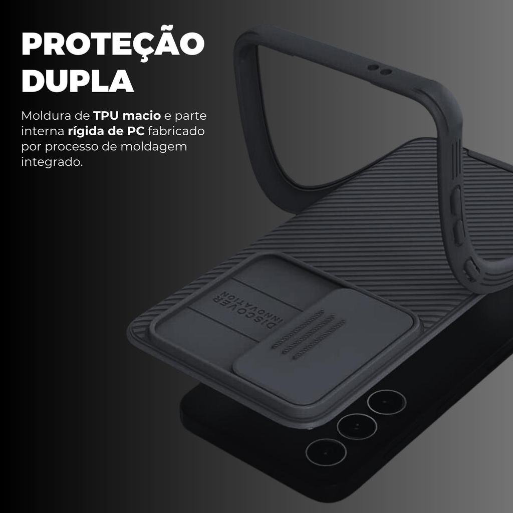 DESCRIÇÃO A Capa Cam Shield Pro Nillkin da Gshield é a solução definitiva para proteger seu Samsung Galaxy S25 com estilo e segurança incomparáveis! Com sua tecnologia Cam Shield integrada, a capa permite que você proteja a integridade da sua câmera com um simples deslize. Assim, você pode garantir sua tranquilidade enquanto desfruta de total controle sobre a exposição da sua lente, evitando desgastes indesejados. Além da proteção da câmera, a Capa Cam Shield Pro Nillkin da Gshield proporciona uma aderência firme e confortável, graças ao seu design ergonômico e aos materiais de alta qualidade utilizados em sua construção. Sua textura suave ao toque oferece uma sensação premium, enquanto sua construção robusta e durável garante uma proteção confiável contra quedas, arranhões e impactos do dia a dia. Projetada exclusivamente para o Samsung Galaxy S25, a capa se encaixa perfeitamente ao seu dispositivo, mantendo acesso fácil a todas as portas, botões e funcionalidades. Combinando estilo, funcionalidade e proteção avançada, a Capa Cam Shield Pro Nillkin da Gshield é a escolha ideal para quem busca segurança e praticidade. ESPECIFICAÇÕES Marca: Gshield Material: Polipropileno de alta densidade Dimensões: Dimensões exatas do aparelho Cor: Preta Proteção: Contra impactos e riscos Certificações: US Military