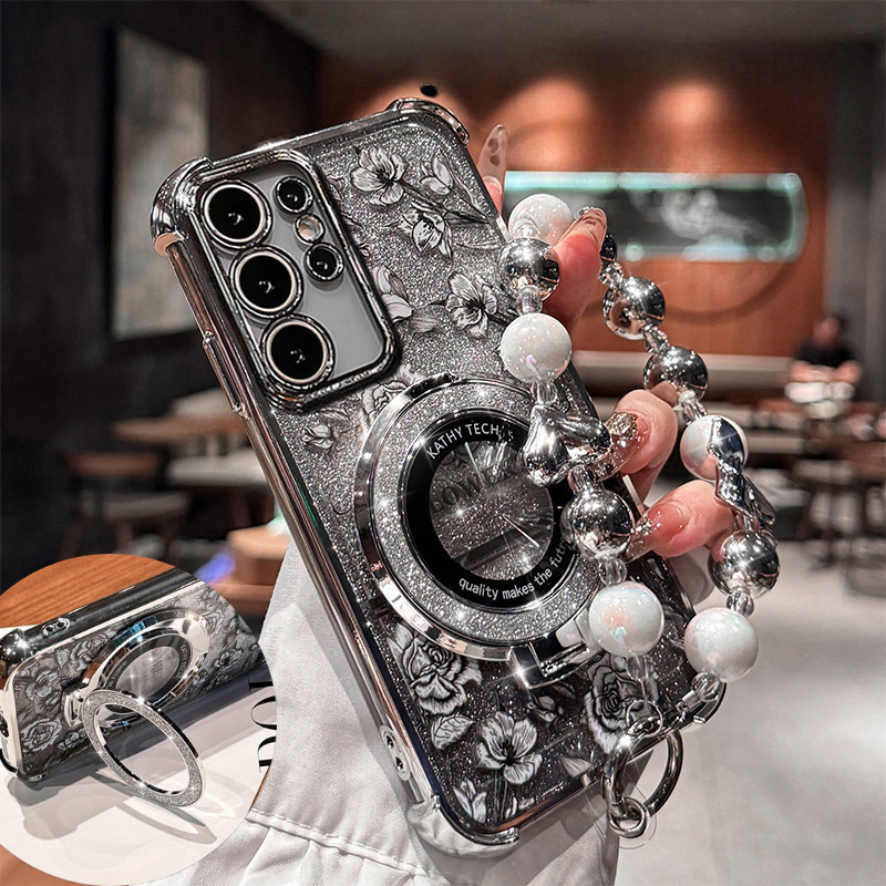 Capa Para Samsung Galaxy S26 S25 S24 S23 Ultra S23 S24 S25 Plus S25FE S24FE S23FE Glitter Suporte Magnético De Telefone