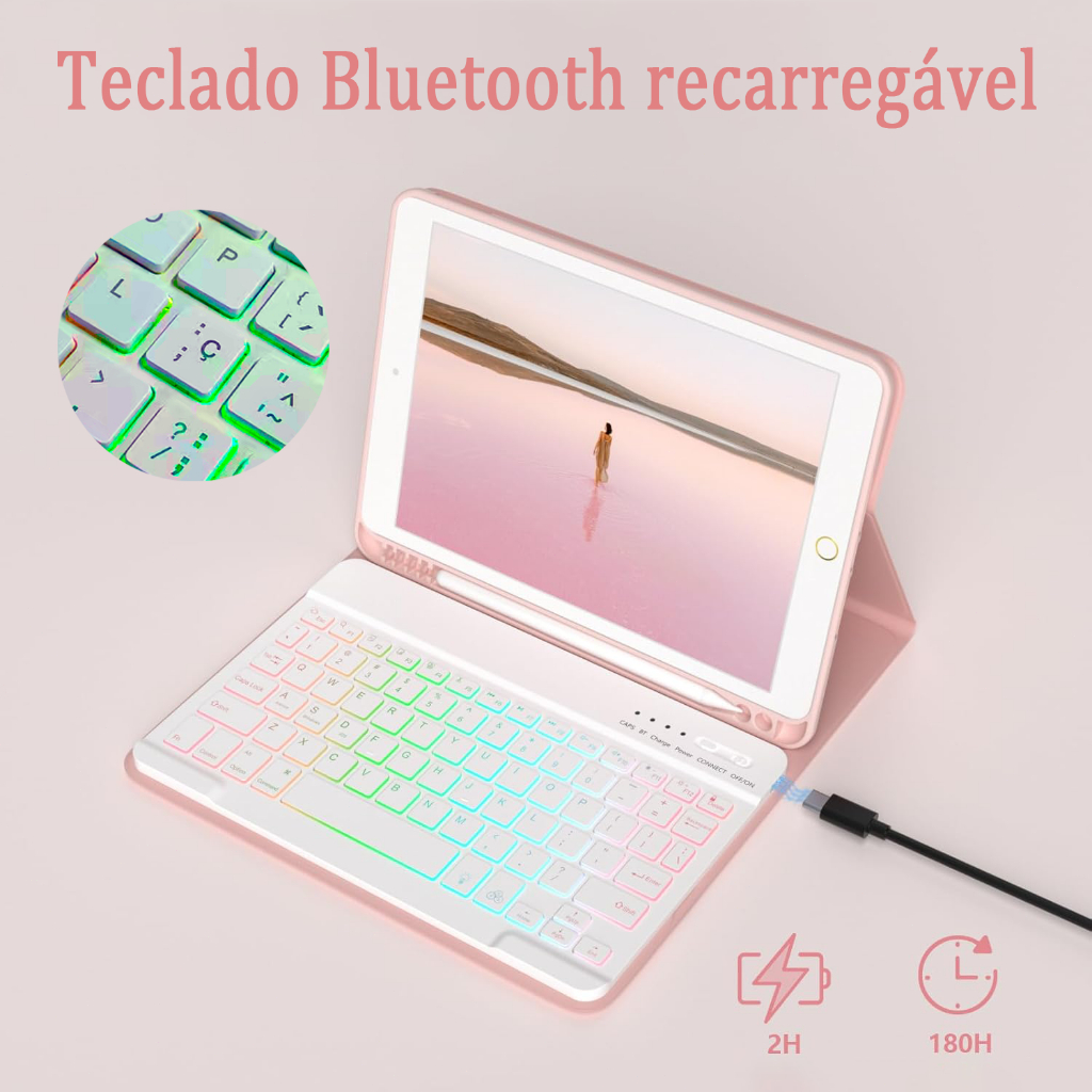 Capa Para Samsung Tab A9 Plus/S10FE/S9FE/S10Lite/S9 Com Abnt2 Teclado Iluminado(Inclui Tecla "Ç" )