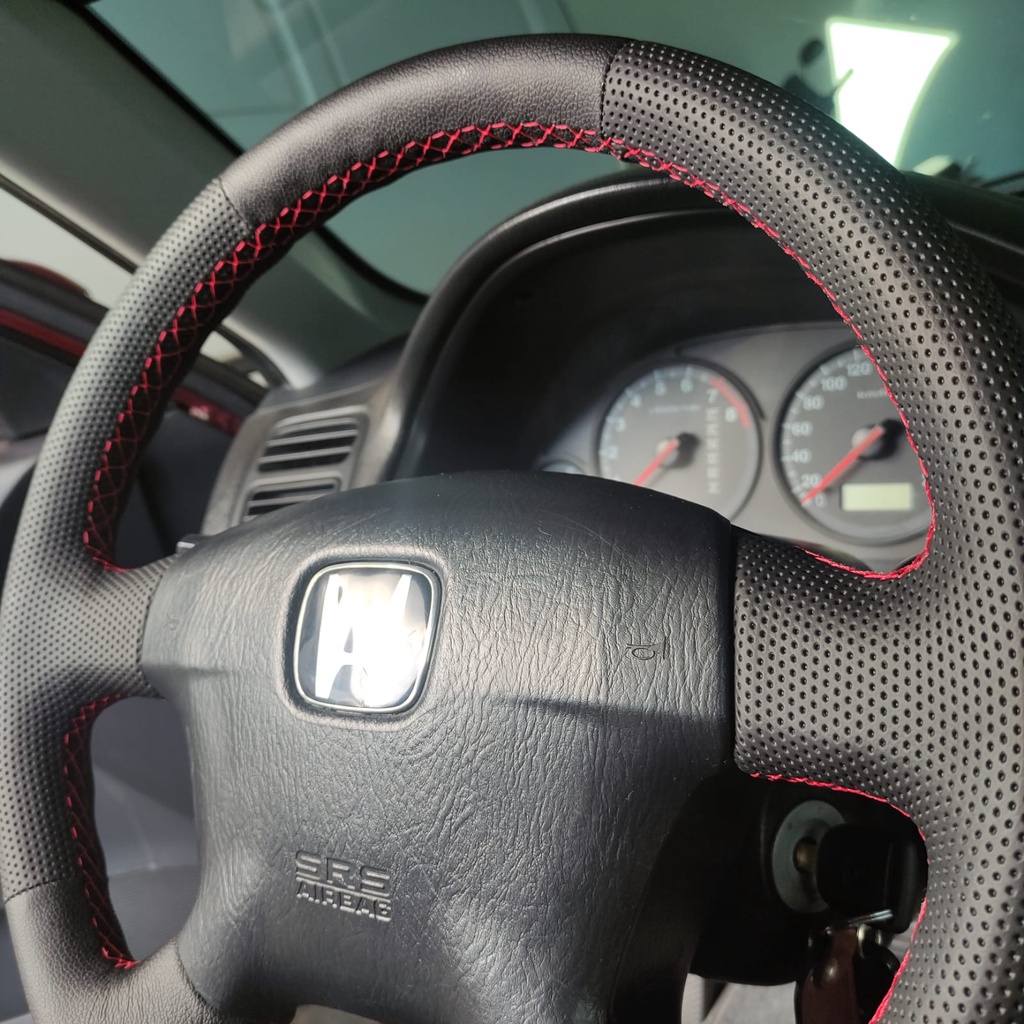 Capa para volante costurada Honda Civic 2001 a 2006 costura vermelha. (OBS: Se quiser trocar a cor da costura nos informe após a compra.) OBS: CAPA PREMIUM COM ACABAMENTO NO ARCO E NOS BRACINHOS DO VOLANTE IGUAL DE FÁBRICA! Temos a pronta entrega, com envio imediato após a confirmação da compra! Nossas capas são confeccionadas com o melhor material do mercado, por isso oferecemos 1 ano de garantia contra defeitos de fabricação. O nosso couro sintético automotivo é o mais indicado para seu volante, não absorve umidade, tem uma maior resistência ao ácido úrico e oferece uma excelente dinâmica ao volante, encaixando perfeitamente sem deixar rugas, e se bem cuidado tem uma durabilidade de até 5 anos em bom estado no volante. ATENÇÃO: Após a compra da sua capa, clique no botão de "mensagem" que aparecerá para você e nos informe: -Modelo e o ano do seu carro; -Se seu volante tem comando de som; -Se possui airbag; -Se ele tem revestimento de fábrica; Observação Importante: Envie uma foto real do seu volante e nos informe se a espessura do arco estiver mais fina ou mais inchada que o normal, mesmo que seja só em alguma parte expecífica. É muito importante a sua ajuda para que possamos lhe enviar o revestimento com as medidas corretas. KIT COM: 1 Capa 1 Linha nylon 100% Poliamida numero 20 1 Agulha 1 Bisnaga com Cola de Contato 1 Link manual de instalação(vídeo) DICA PARA INSTALAÇÃO DA SUA CAPA: 1- Vestir a capa no volante; 2 - Posicionar e Centralizar a capa; 3 - Passar a cola em todo arco e nos bracinhos do volante; 4 - Costurar. O processo é o mesmo para qualquer volante, o que diferencia são os detalhes geralmente nos bracinhos, a capa é bem intuitiva ao encaixar no volante é possível imaginar como será o processo de instalação. Se possível faça a instalação em um dia tranquilo e com uma boa iluminação solar. Mas não se preocupe, lhe enviaremos junto ao seu kit um link contendo o passo a passo em vídeo para melhor instruí-lo. PERGUNTAS FREQUENTES: "Eu mesmo consigo instalar a capa no meu volante ou preciso contratar um profissional para isso?" R: Nossa capa é desenvolvida para que qualquer pessoa possa fazer a instalação, mas se mesmo assim não se sentir seguro(a) existem muitos profissionais na área para lhe ajudar. "Vocês trabalham com couro legítimo(natural)?" R: Não trabalhamos, o nosso couro sintético automotivo é o melhor produto do mercado em vários aspectos; melhor custo benefício, uma maior resistência ao ácido úrico, não absorve umidade, e tem uma melhor dinâmica para o volante com encaixe perfeito. DESDE JÁ AGRADECEMOS SUA VISITA E AGUARDAMOS SUA COMPRA! Não perca Tempo, dê mais vida ao seu volante! ;)