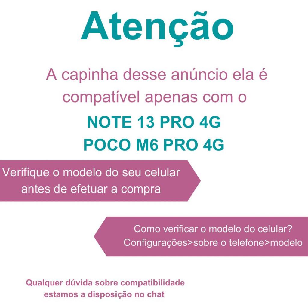 | Capa para Xiaomi Note 13 Pro 4g / Poco M6 Pro 4g Kit Capa + Pelicul... este produto | R$ 11,89 | — | 4.8/5 | — |
