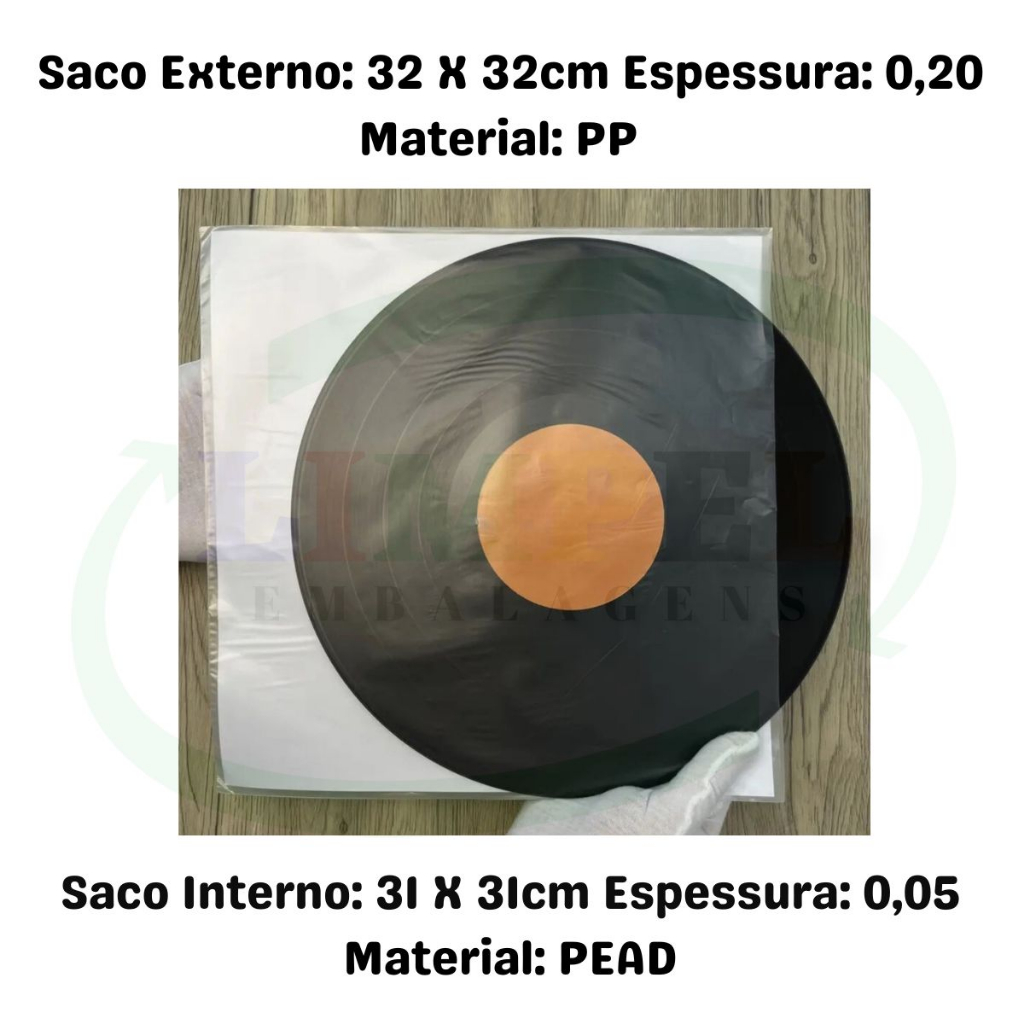 Capa Proteção Disco Vinil Lp 40 Saco Plástico 20 Externo 20 Interno